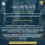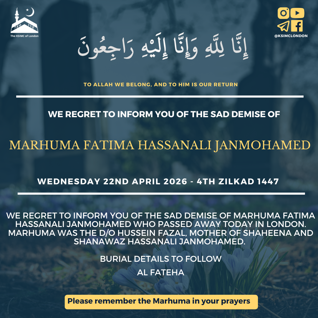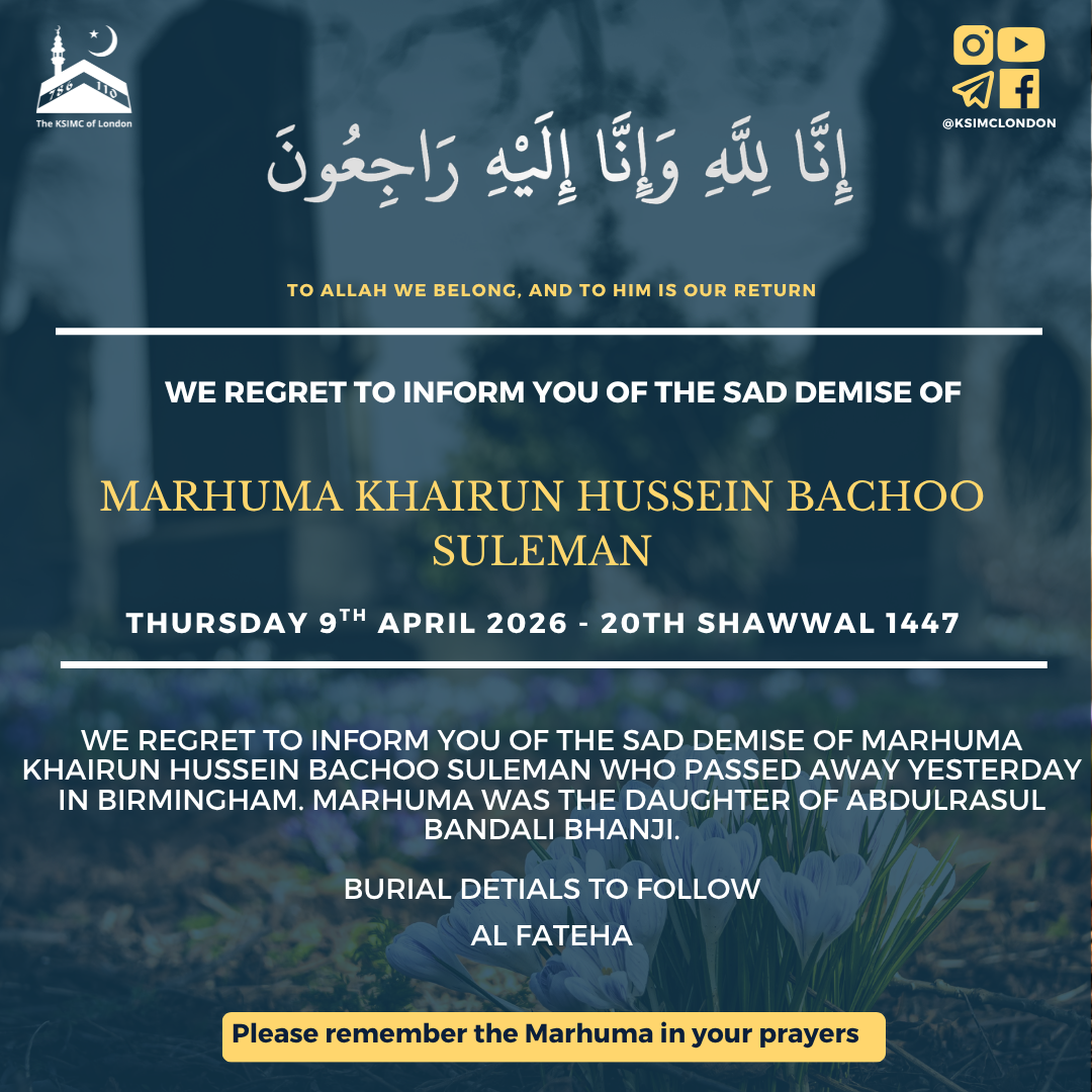 Darul Qur’an wal Itrah is pleased to announce Qur’an recitation class for Girls starting from Friday 17th April 2026 at Hujjat Stanmore: Age category: 5-7 years old Girls Day and Time: Every Friday from 5pm-6pm…