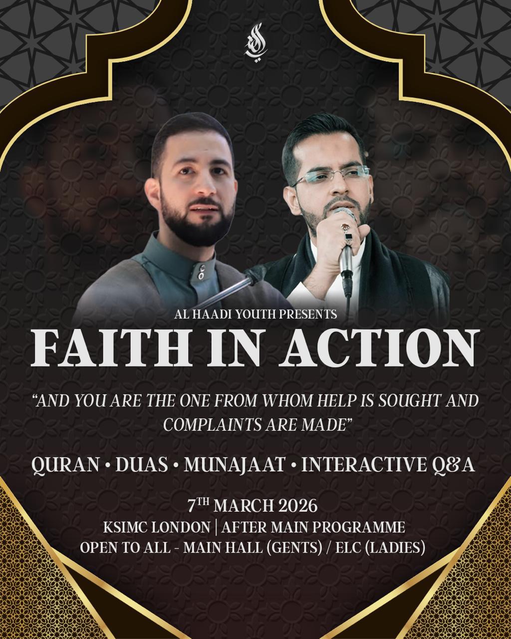 Al Haadi Youth invites you to… Faith in Action This Saturday 7th March, join us for an evening of du’a for the oppressed, reflection on the words of the Ahlul Bayt (as) and an interactive…