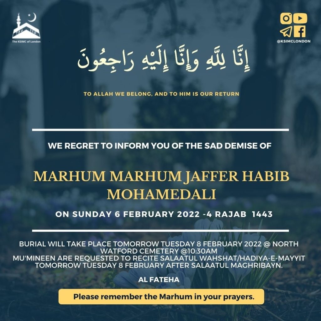 News of Death: Marhum Jaffer Ali Nazarali Merali Dewji