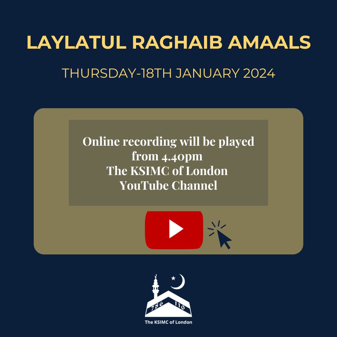 4:45pm – Online Stream Only – A’maal of Laylatul Raghaib