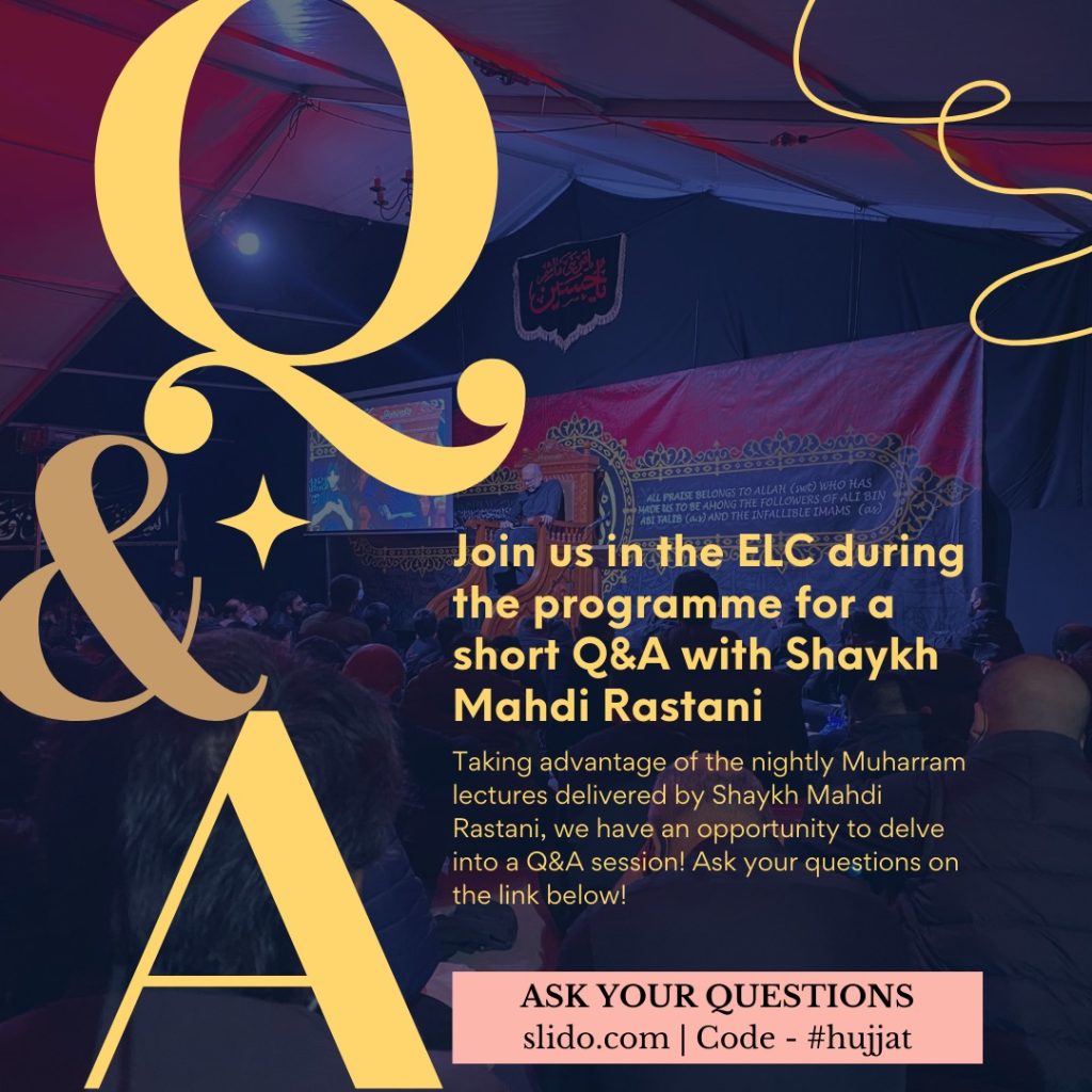 Take advantage of the nightly Muharram lectures delivered by Shaykh Mahdi Rastani and dive into a Q&A session! Ask your questions live and get insightful answers.