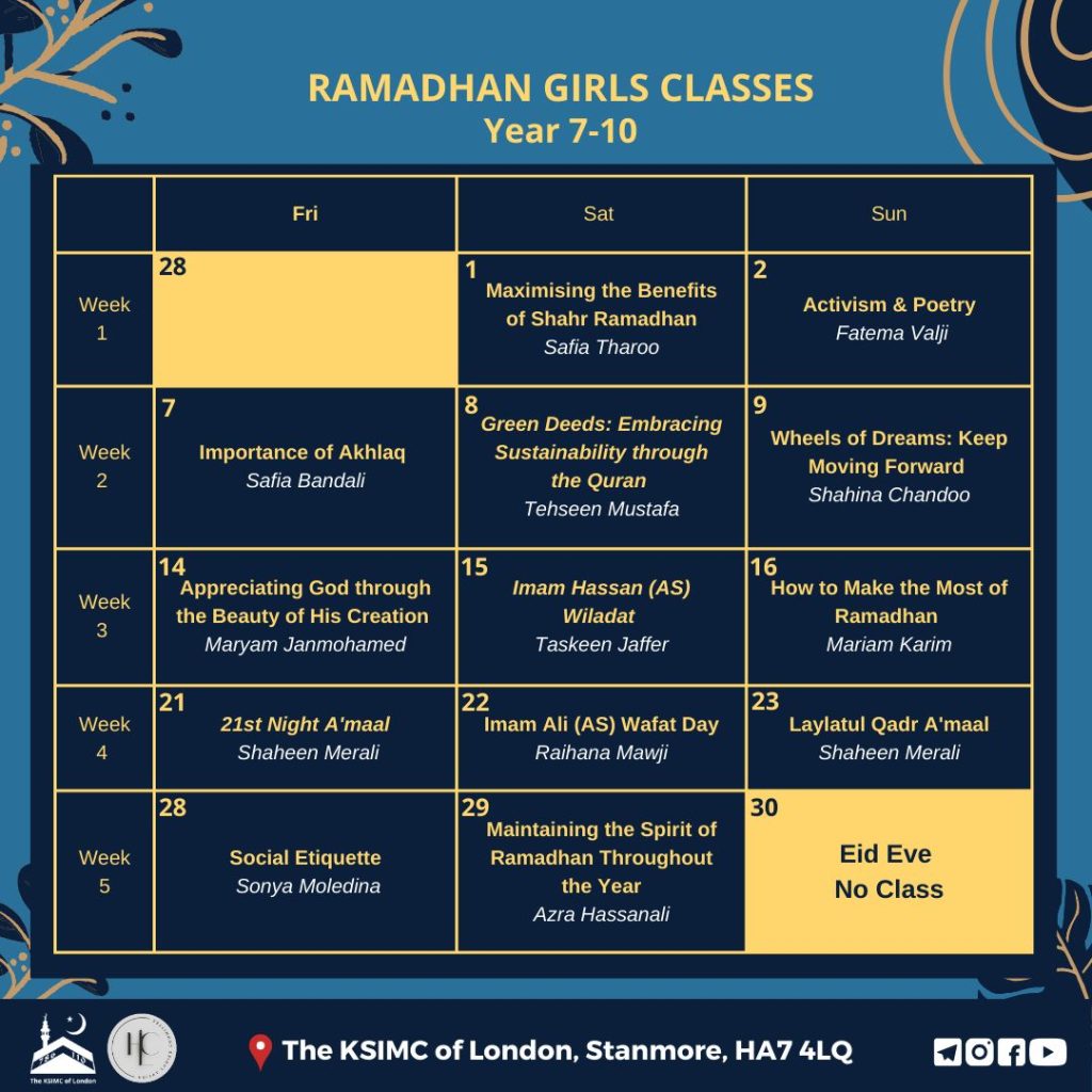 Hujjat ladies committee has organised a special series of girls’ classes throughout Shahr Ramadhan, running parallel to the main hall lectures: