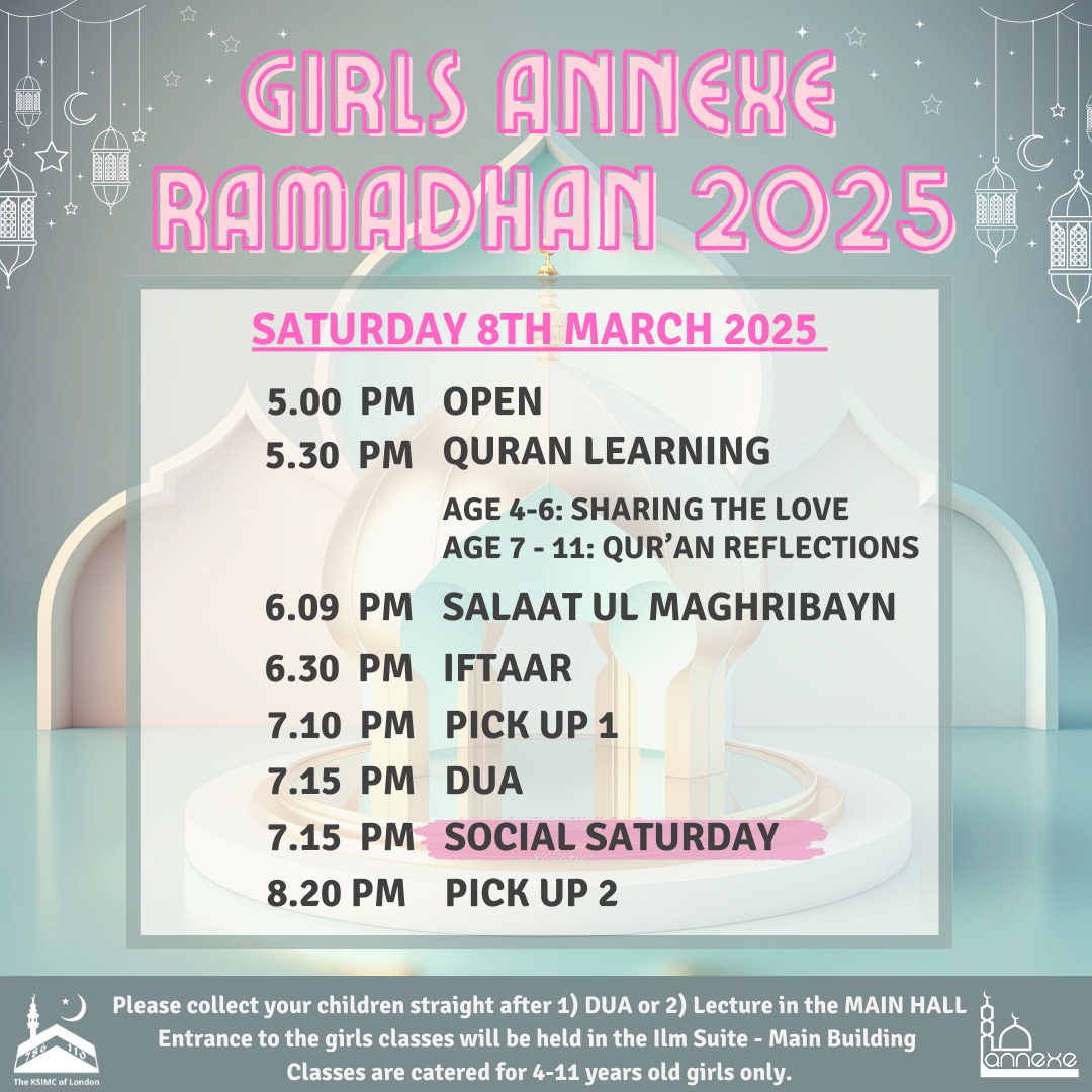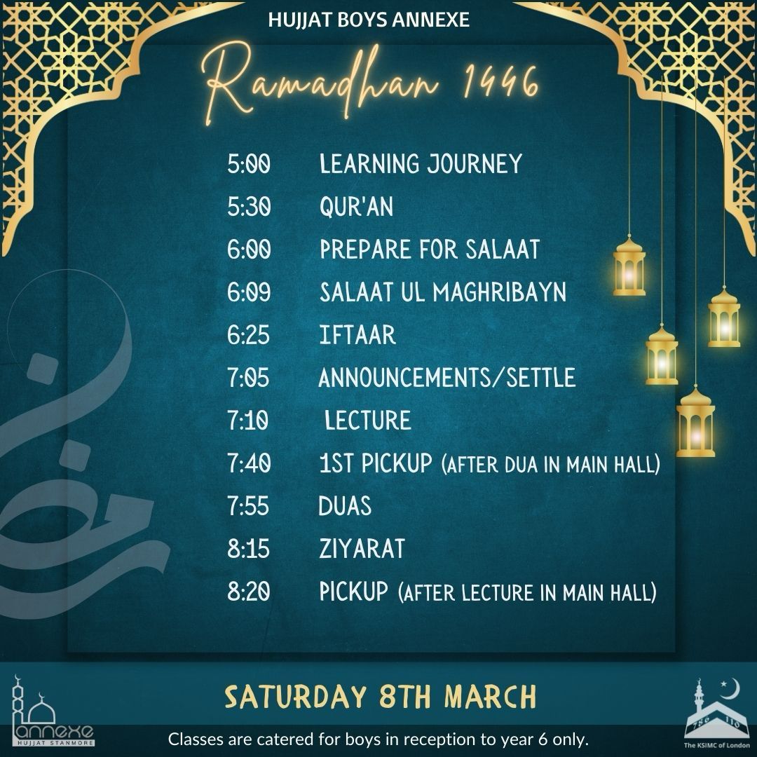 Hujjat ladies committee has organised a special series of girls' classes throughout Shahr Ramadhan, running parallel to the main hall lectures: