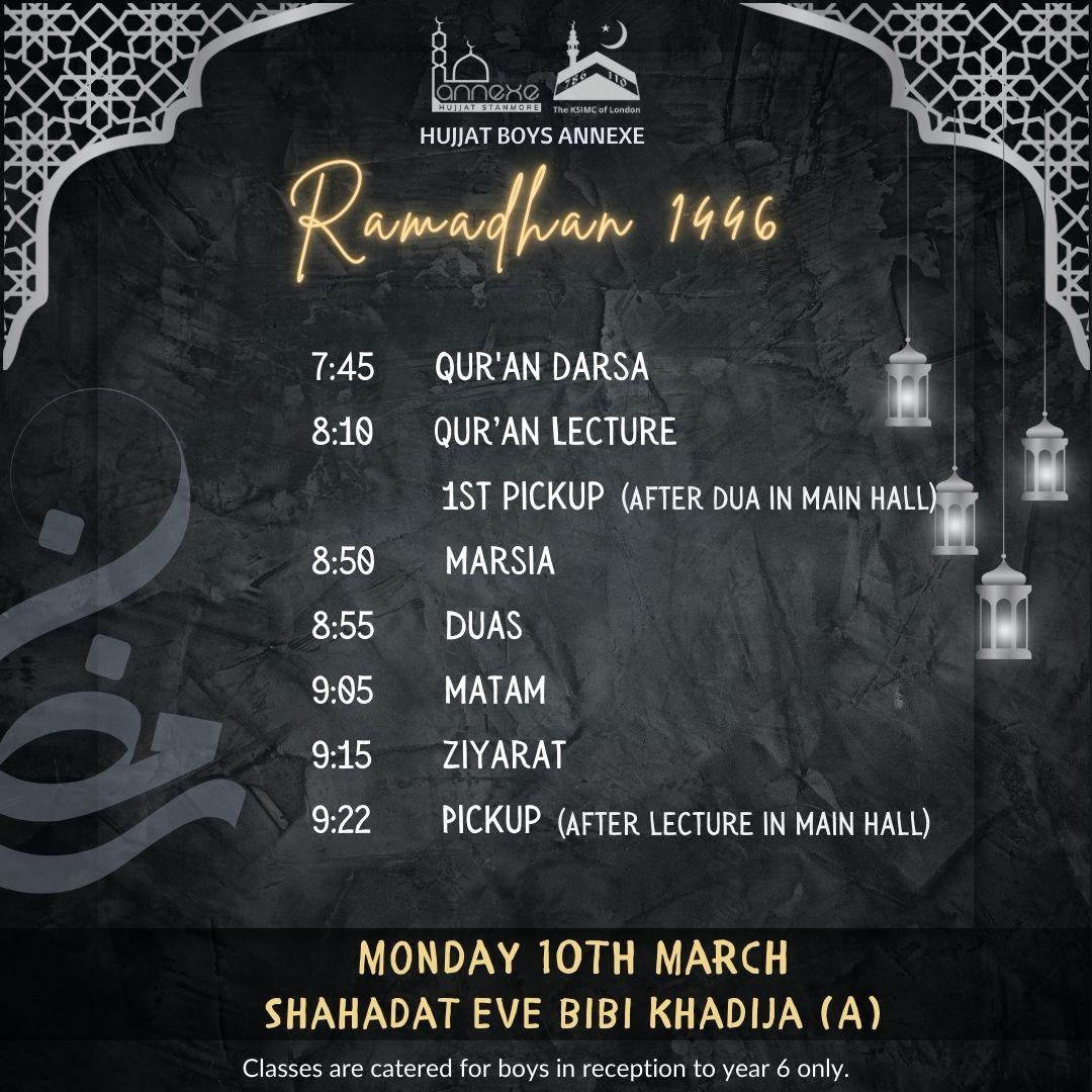 EVE 10 Mah-e-Ramadhan 1446AH – SHAHADAT EVE OF BIBI KHADIJA (A)