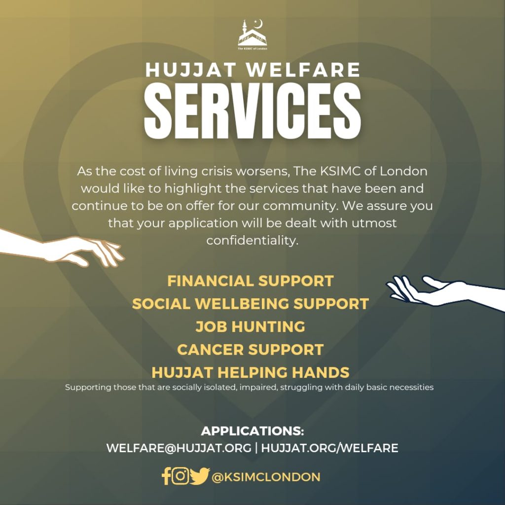 In these uncertain times of upcoming financial hardships, we are able to offer ration and food assistance to members and attendees of Hujjat Stanmore.
