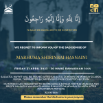 We regret to inform you of the sad demise of Marhum Sajjad Hussein Syed who passed away in London and will be buried tomorrow.
