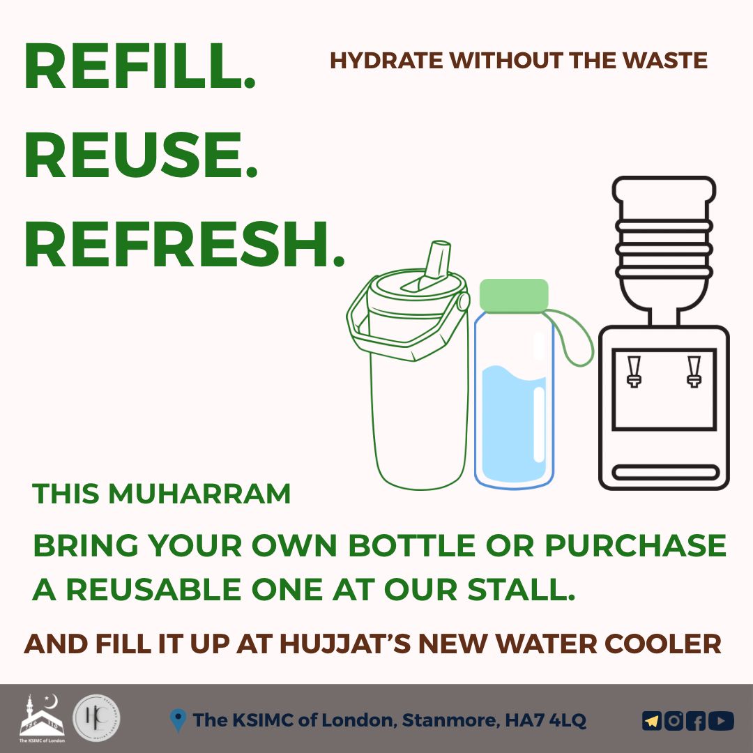 🌿💧 This Muharram: Refill with Purpose, Remember with Heart💧🌿 As we mourn Imam Hussain (AS) and the tragedy of Karbala, let’s also honour his legacy through conscious action. Hujjat now has a water cooler — bring your own reusable…