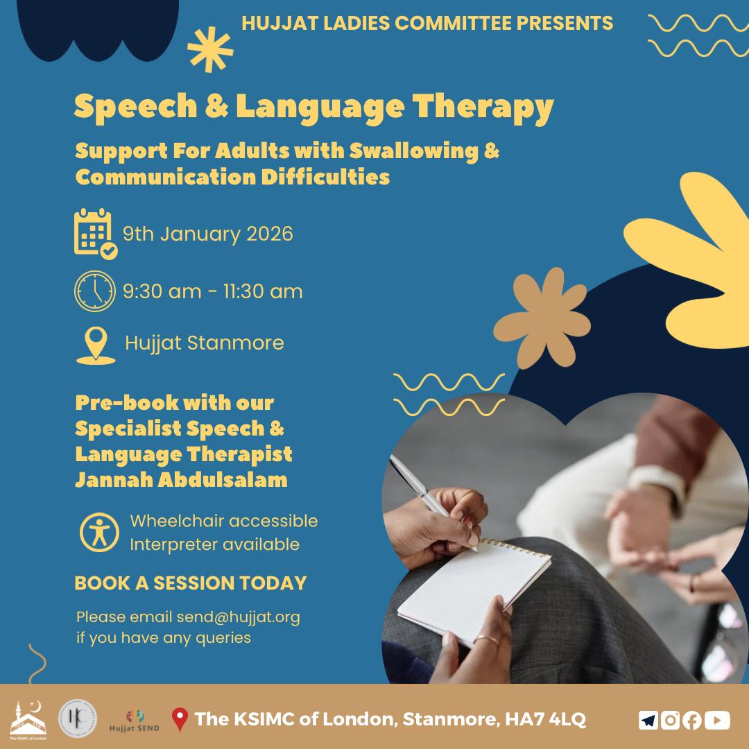 Hujjat SEND & Ladies Committee bring you Speech & Language Support for adults with swallowing and communication difficulties such as :